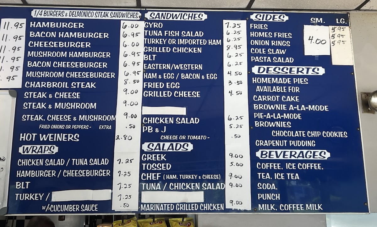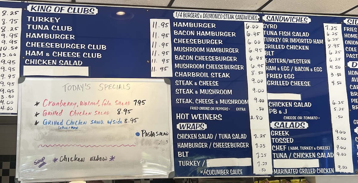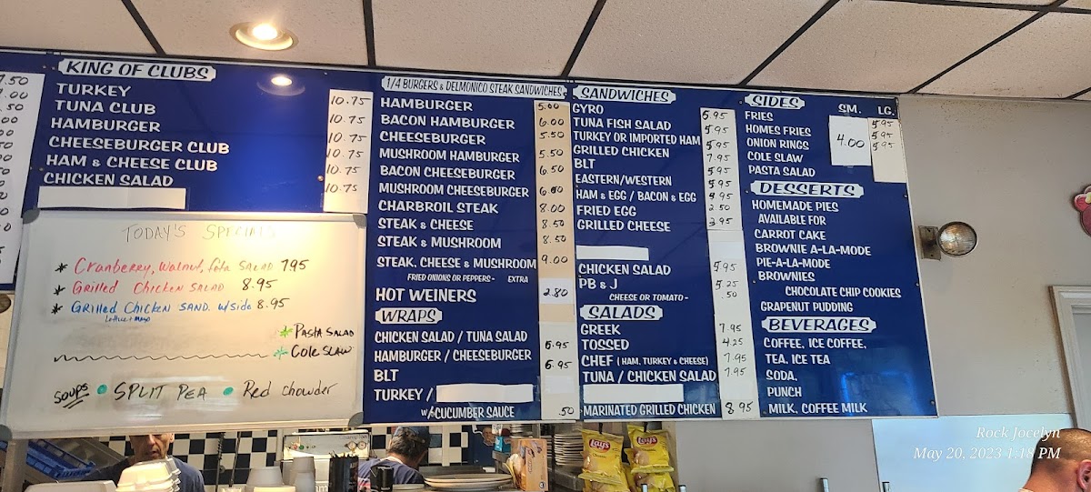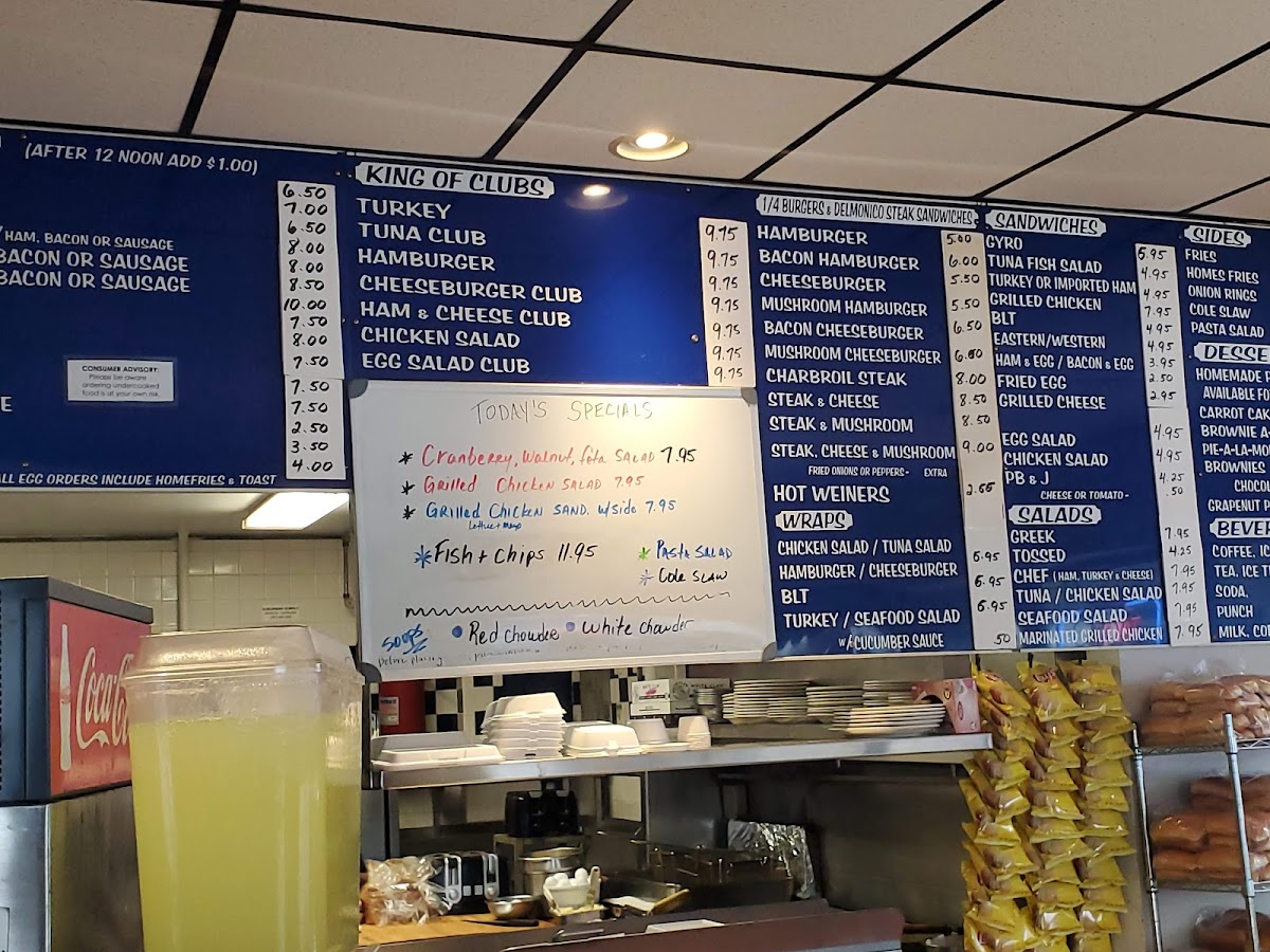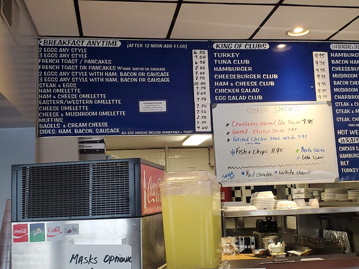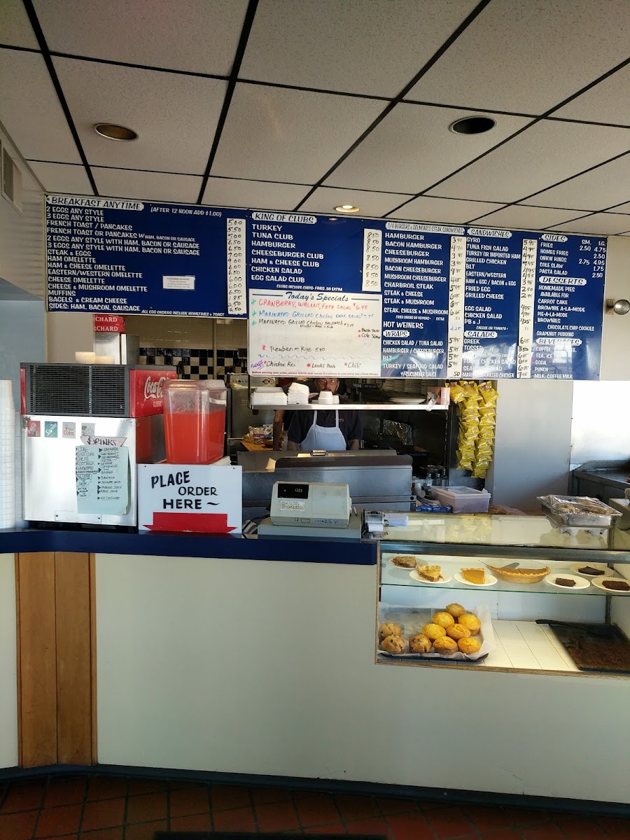 Breakfast favorites like fluffy French toast, hearty omelettes, and the all-time-loved ham and eggs pair naturally with the friendly, no-frills setting. As the day goes on, you’ll find comforting options such as chicken noodle soup or a variety of sandwiches, including clubs and cheeseburgers, designed to satisfy a casual appetite. Onion rings and home fries provide familiar sides, completing meals with a homestyle touch.